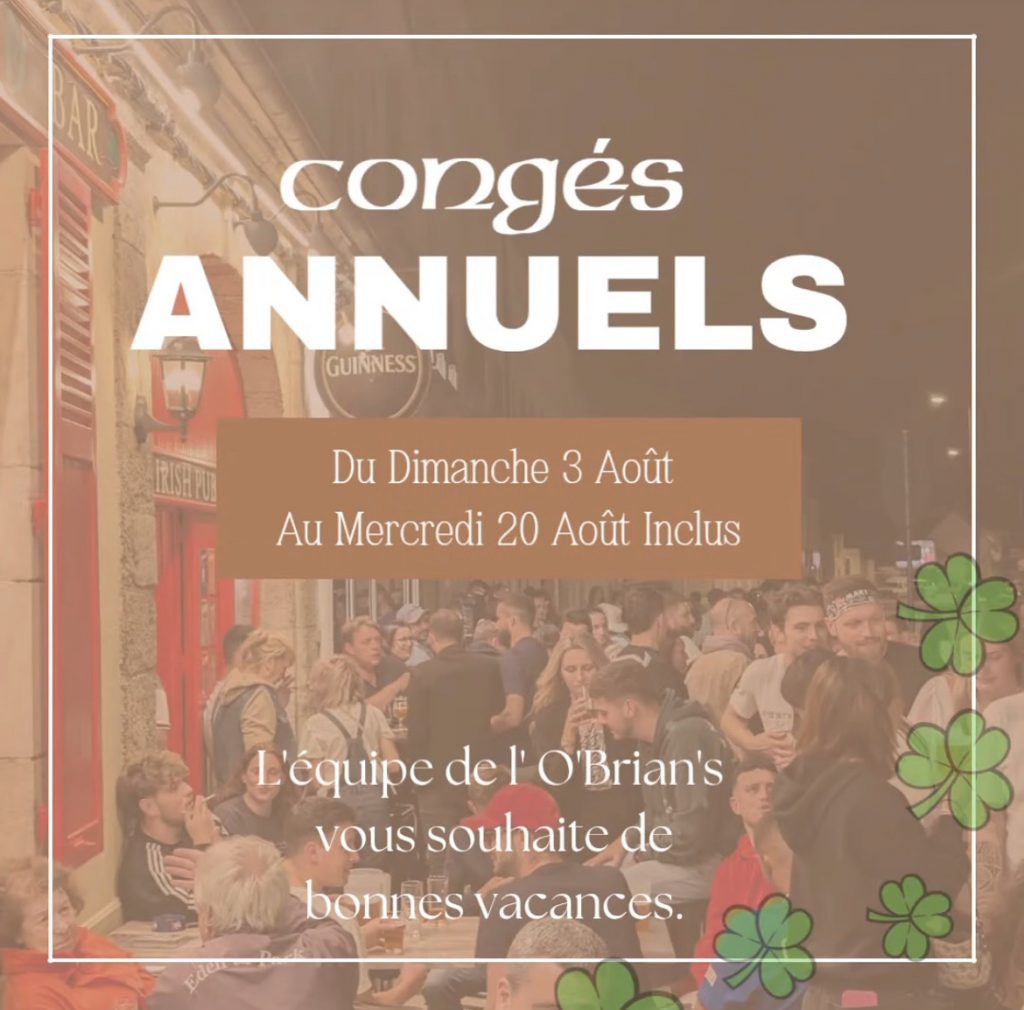 Congés annuels du dimanche 3 au mercredi 20 août 2025 inclus.